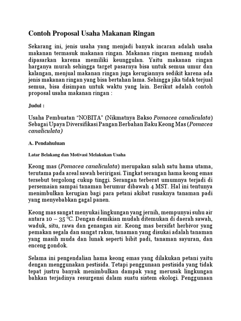 Contoh proposal usaha makanan tradisional perum melati proposal usaha makanan. 4 contoh proposal usaha makanan ringan sehat sederhana.